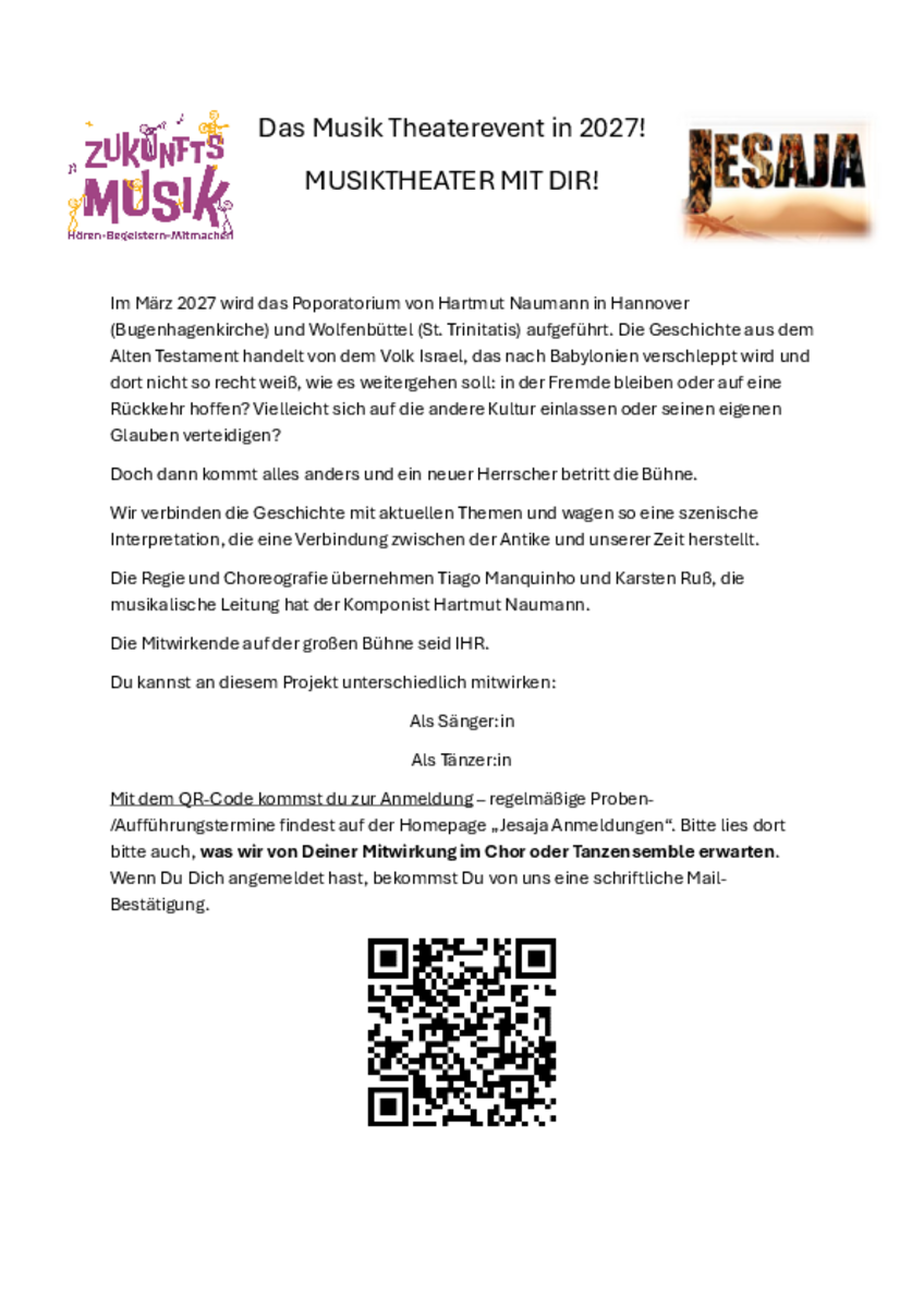 Anmeldung mit QR Code oder direkt zum Reiter "Jesaja Anmeldungen"
