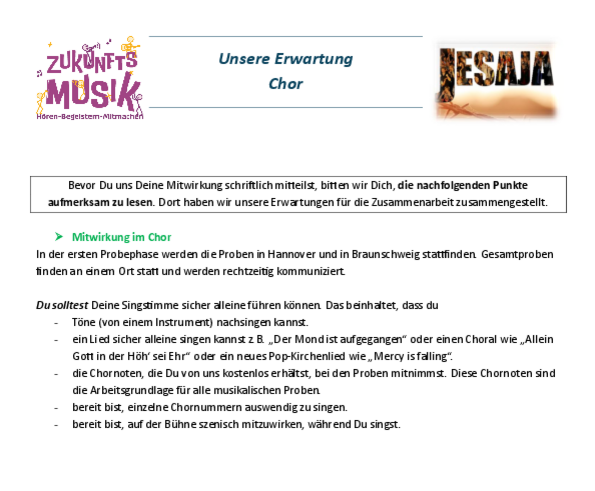 Jesaja Probeinfos Chor